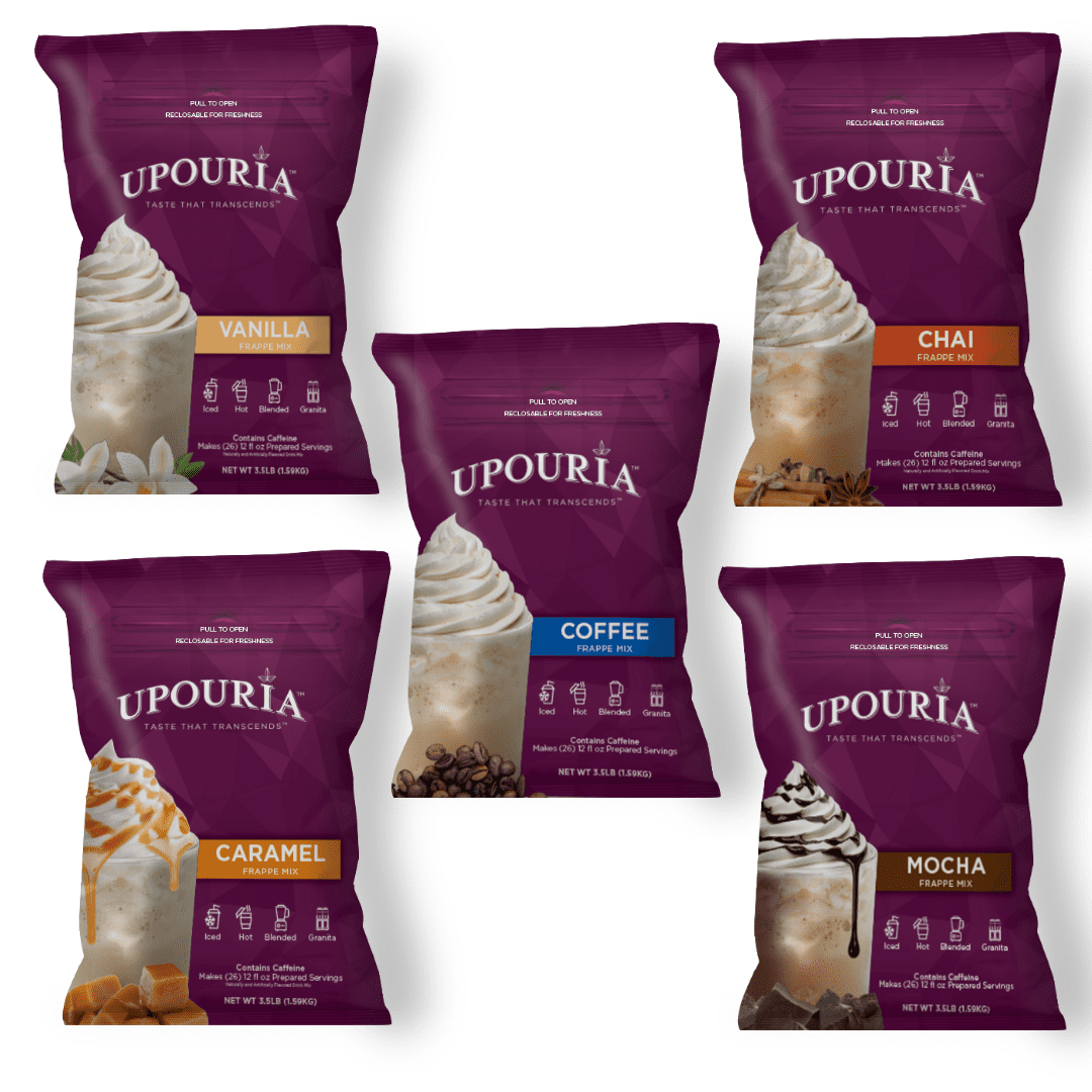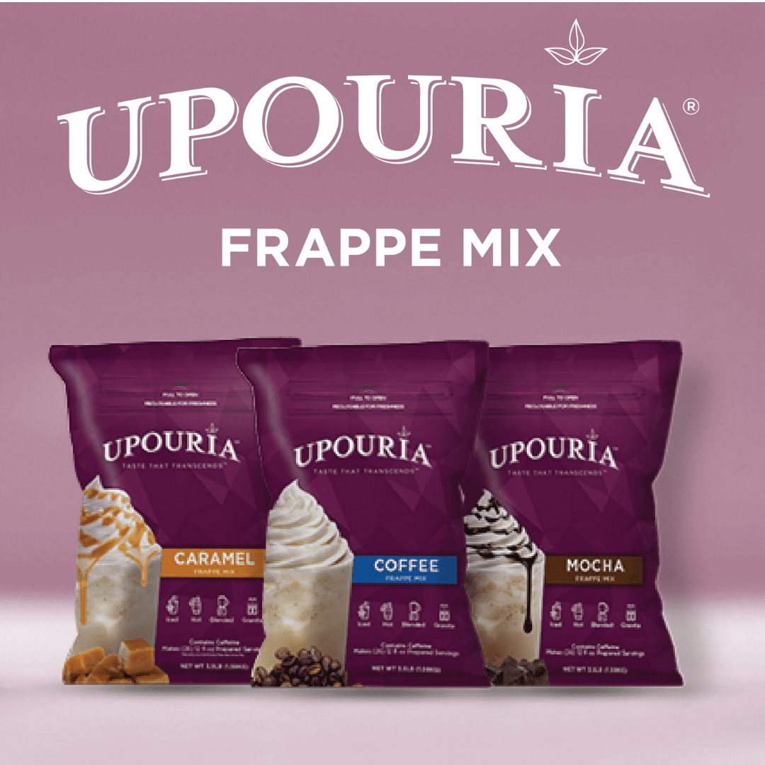 Upouria® Frappe Mixes are extremely cost-effective and provide high profit margins. They require no additional ingredients beyond ice and milk, and their “one-scoop” preparation allows for easy portion control and drink consistency.